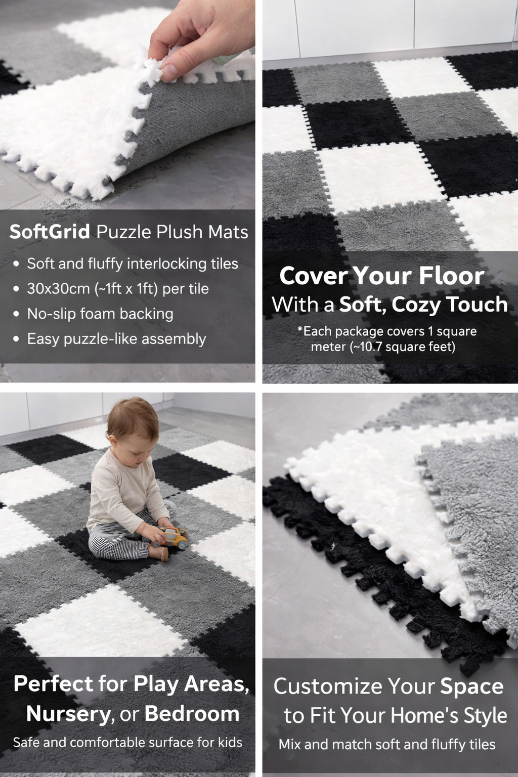SoftGrid Puzzle Peluş Halı (1 Paket 12 Adet~1 m²)
